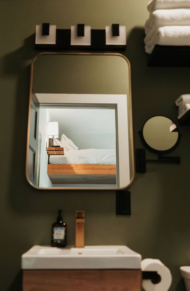 Luxury meets tranquility in our unique suite nestled in front of the majestic Chilhowee Mountain. Wake up to the breathtaking views of the expansive grassy fields and towering timber surrounding you. Experience a detailed upscale resort-style aesthetic in this rural farm setting. Our suite has been thoughtfully designed to provide you with pure comfort and convenience. Located just one mile away from the majestic Ocoee River, you will have easy access to all the adventures it has to offer.